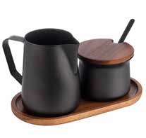 Tejkiöntő és cukortartó tetővel, fa kanállal alátét tálcával 19x10cm