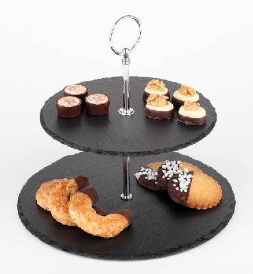 Kínáló állvány 2 szintes átm.25/20cm mag.24cm vas.4-7mm pala