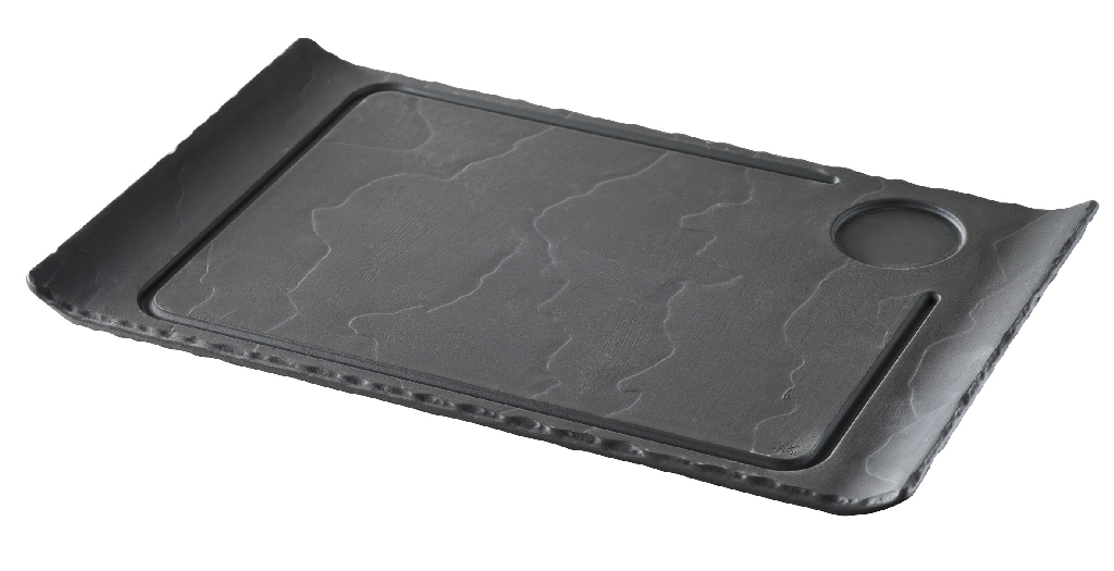 REVOL BASALT Steak tányér 1 mélyedéssel 39,5x24x2 cm - sütő porcelán, fekete, négyszögletes, két szélén felhajtással, 4db/cs db/ár